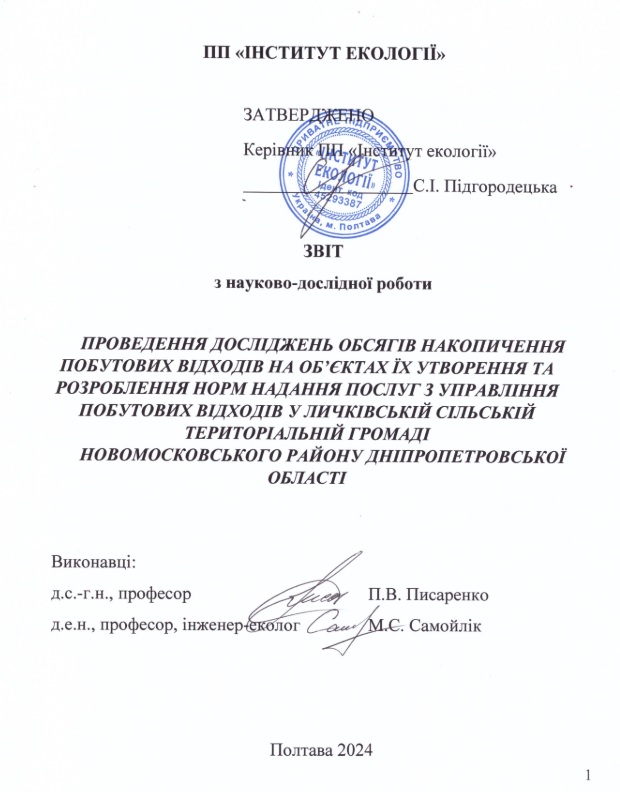 ЗВІТ З ПРОВЕДЕННЯ ДОСЛІДЖЕНЬ ОБСЯГІВ НАКОПИЧЕННЯ ПОБУТОВИХ ВІДХОДІВ НА ОБ’ЄКТАХ ЇХ УТВОРЕННЯ ТА РОЗРОБЛЕННЯ НОРМ НАДАННЯ ПОСЛУГ З УПРАВЛІННЯ ПОБУТОВИХ ВІДХОДІВ У ЛИЧКІВСЬКІЙ ТГ